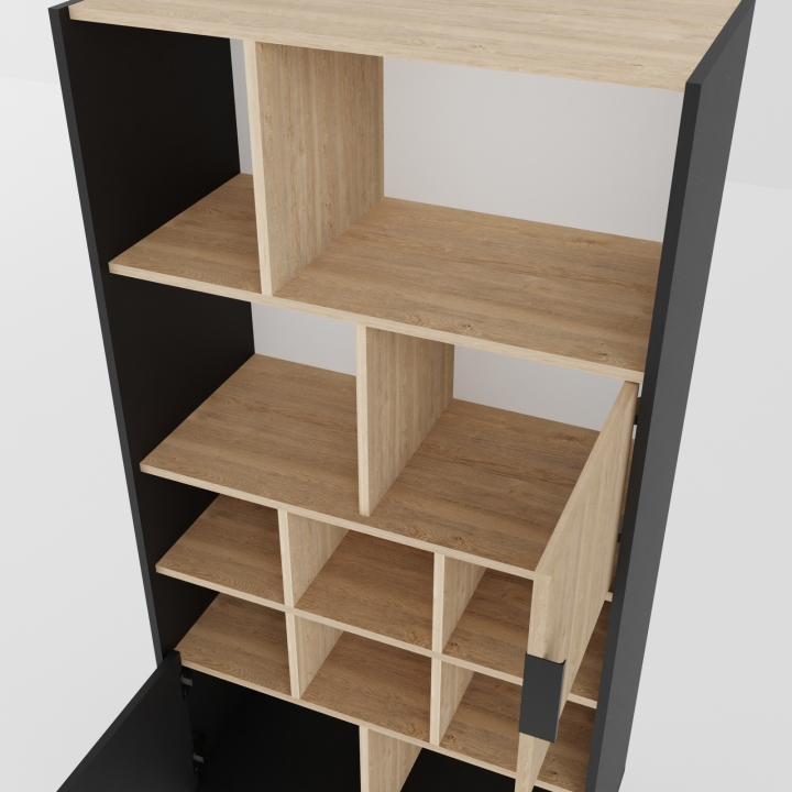Шкаф Сканди К-11 имеет две распашные дверцы и десять открытих полок. Шкаф идеально подходит для хранения необходимых вещей.