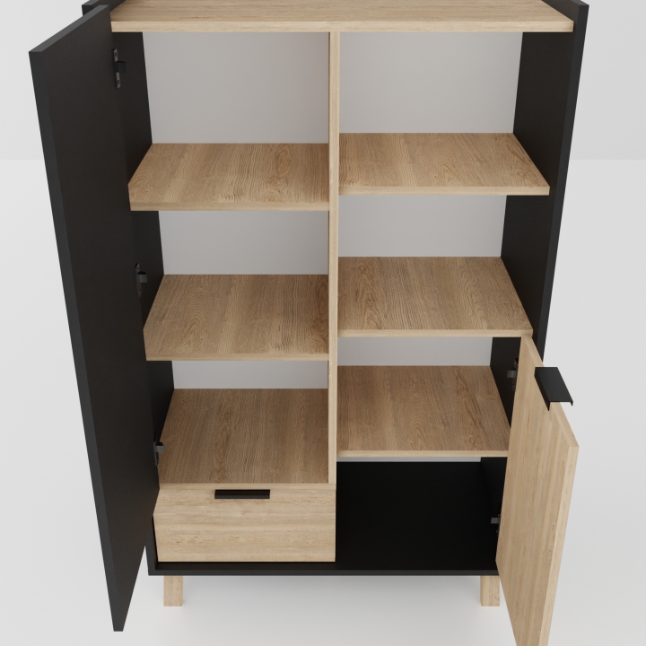 Шкаф Сканди К-07 имеет две распашные дверцы и один выдвижной ящик на телескопических направляющих. Шкаф идеально подходит для хранения необходимых вещей.