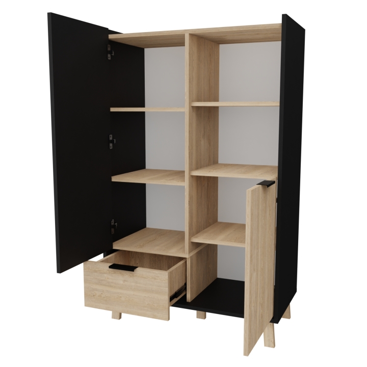 Современный шкаф Сканди К-07 от украинской мебельной фабрики Неман, бесспорно, является оригинальным дополнением вашего пространства и всегда привлекает к себе внимание. Он изготовлен из качественных экологических материалов ЛДСП в сочетании с натуральным деревом.