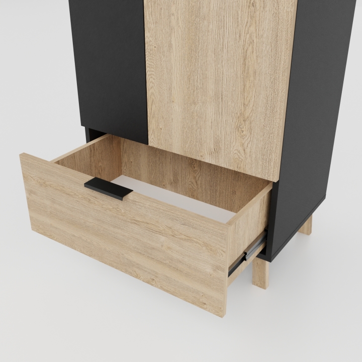 У шкафа Сканди С-101 есть две распашные дверцы и один выдвижной ящик на телескопических направляющих. Шкаф идеально подходит для хранения необходимых вещей.
