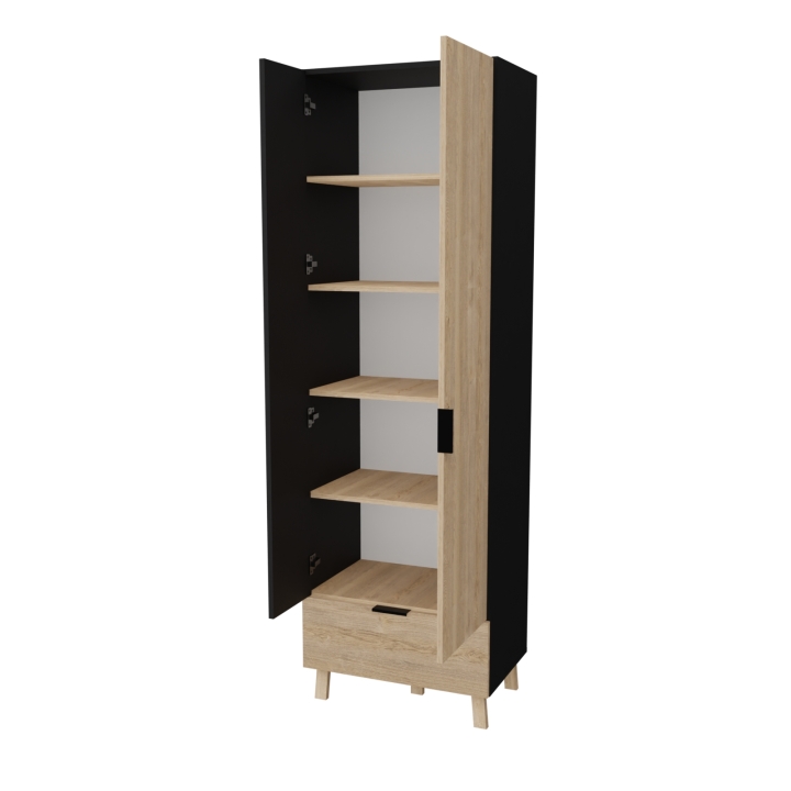 Современный шкаф Сканди С-101 от украинской мебельной фабрики Неман, бесспорно, является оригинальным дополнением вашего пространства и всегда привлекает к себе внимание. Он изготовлен из качественных экологических материалов ЛДСП в сочетании с натуральным деревом.
