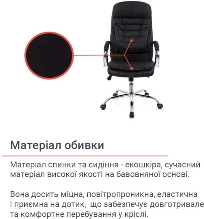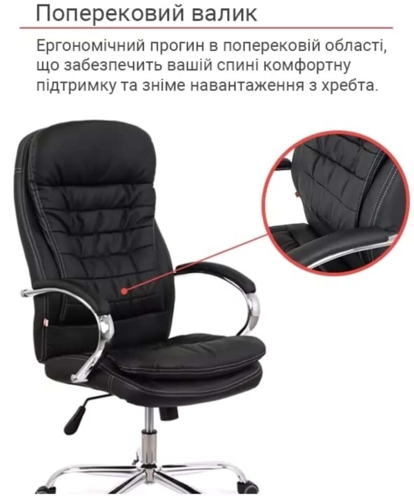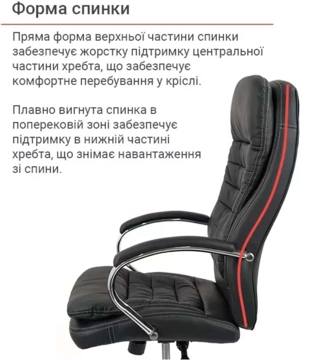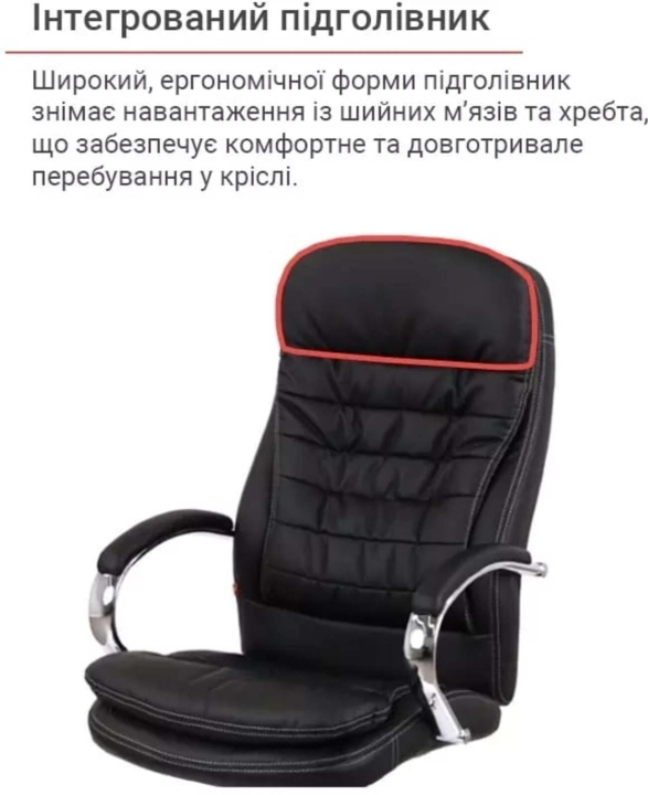 Дизайн. Дана модель відрізняється елегантними лініями, високою спинкою з інтегрованим підголовником і наявністю яскраво вираженої поперекової підтримки. Поєднання хромованих елементів із матовою оббивки крісла гармонійно доповнюють один одного і будуть доречні і в сучасному інтер'єрі, і в класичному.
