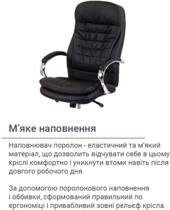 Особливості. Крісло Валенсія має комфортну спинку і сидіння. За допомогою поролонового наповнення і оббивки, сформований правильний по ергономіці і привабливий зовні рельєф крісла. Всі вигини розроблені з урахуванням антропометрії тіла і дозволять вам відчувати себе в цьому кріслі комфортно і уникнути втоми навіть після довгого трудового дня.