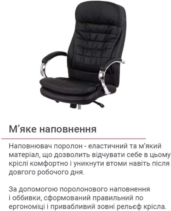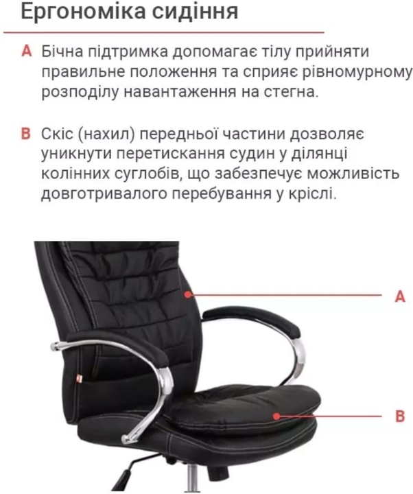 Подлокотники. Элегантный изгиб металлических подлокотников данной модели обрадует вас своей эргономичной формой и прочностью, а мягкие накладки не только прекрасно дополняют внешнюю красоту кресла, но и подарят вашим рукам ощущение легкости и максимального комфорта.