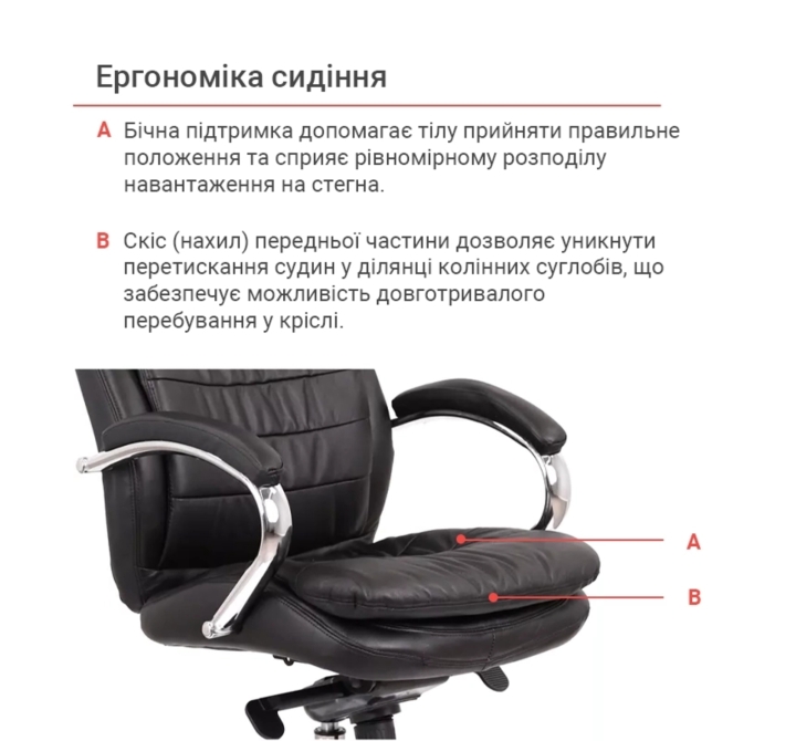 Подлокотники. Изящный изгиб подлокотников, дополненный мягкими накладками, не только прекрасно подчеркивает внешнюю красоту кресла, но и подарит Вашим рукам чувство максимального комфорта.
