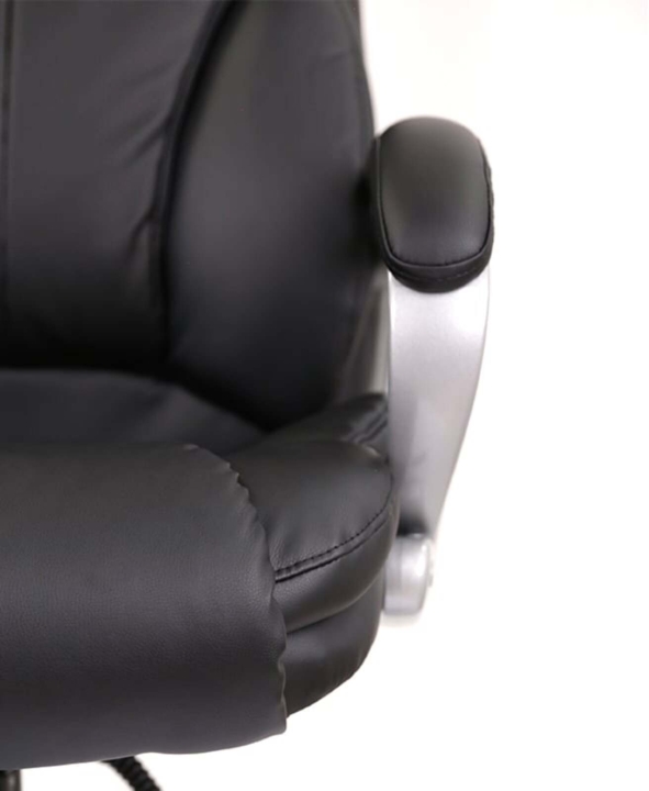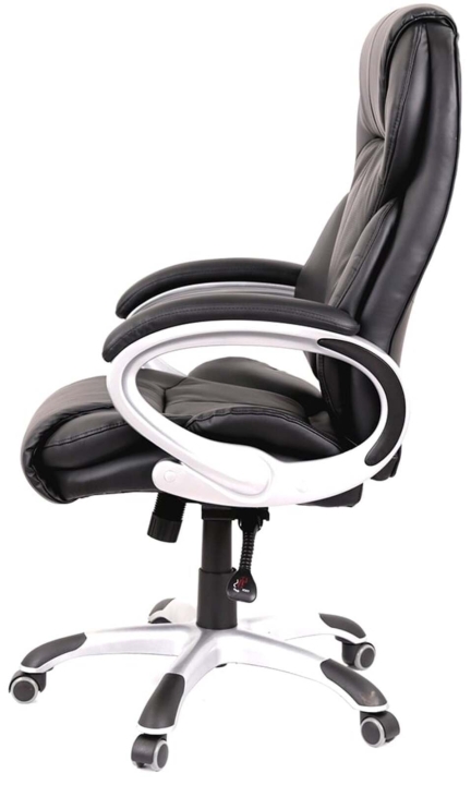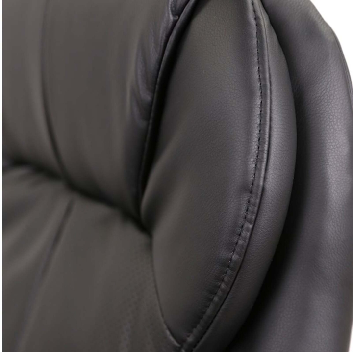 Обивка. Для кресла была выбрана универсальная обивка, а именно качественная экокожа. Этот материал практически не уступает своим качествам натуральной коже, а цена – это его основное преимущество. Он имеет натуральное основание и отлично зарекомендовал себя за годы использования в офисе. Экокожа – это современный, прочный материал, простой в уходе.