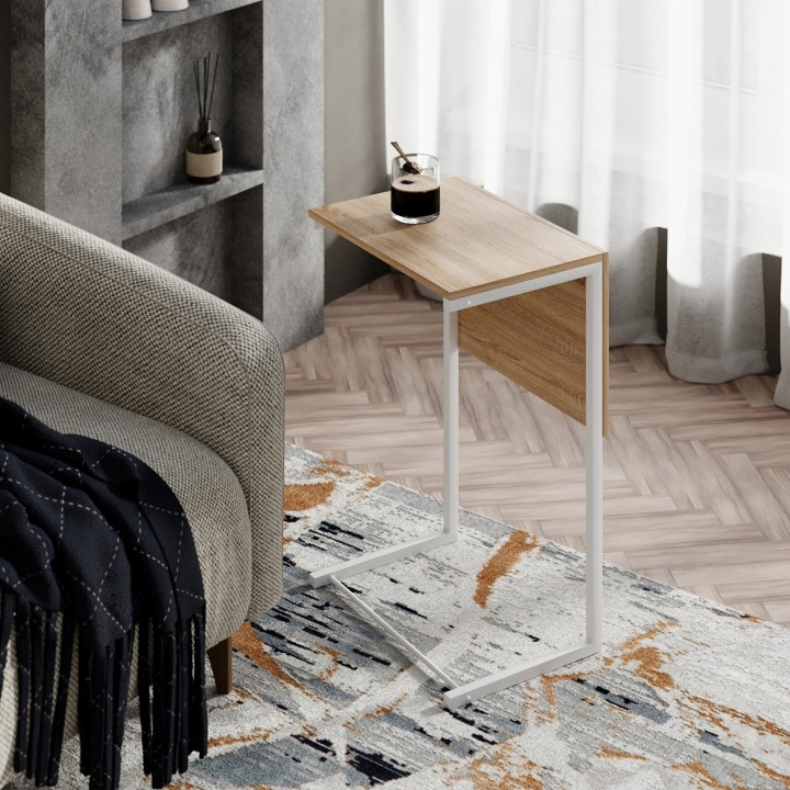 Придиванний столик “Just Fiji”: Універсальність і Стиль у Вашому Домі Для поціновувачів функціональних меблів ми створили по-справжньому практичний, універсальний і компактний придиванний столик “Just Fiji”. Цей стіл ідеально поєднує сучасний дизайн із багатофункціональністю, дозволяючи вам легко перетворювати його з компактного придиванного столика в зручний журнальний стіл або столик для приємних сніданків у ліжко. Усе це завдяки динамічному кріпленню стільниці на магнітах, що забезпечує просту і надійну трансформацію. Переваги стола “Just Fiji”: Міцний та довговічний каркас: Стіл обладнано металевим каркасом, покритим безпечною порошковою фарбою, що гарантує його стійкість і тривалу експлуатацію. Це забезпечує не лише надійність, а й сучасний вигляд, що підходить для різних інтер’єрів. Розбірна стільниця з ЛДСП: Стіл має стільницю з якісної ламінованої ДСП товщиною 10 мм, яка є міцною і легко чиститься. Цей матеріал забезпечує не тільки естетичний вигляд, але й високу зносостійкість. Магнітний механізм трансформації: Оригінальний магнітний механізм дозволяє легко і швидко перетворювати стіл відповідно до ваших потреб. Цей простий і надійний механізм робить використання стола комфортним і безпроблемним. Адаптивність і багатофункціональність: Стіл “Just Fiji” легко адаптується до різних сценаріїв використання, що робить його ідеальним для будь-якого простору. Чи то для роботи, відпочинку, чи приймання їжі, він завжди буде до речі. Оригінальний зовнішній вигляд: Стіл має різні кольорові комбінації, що дозволяє легко інтегрувати його в будь-який інтер’єр — від лофт і модерну до класичного стилю. Це додає елегантності і затишку вашому простору. Обираючи придиванний столик “Just Fiji”, ви отримуєте не лише функціональні меблі, але й стильний елемент декору, який доповнить ваш інтер’єр і створить атмосферу комфорту.