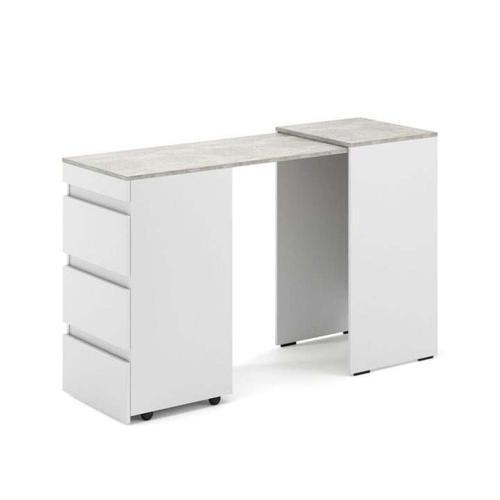 Компактний, зручний та стильний комод-трансформер, що за потреби легко перетворюється в робоче місце. Надійний та легкий механізм трансформації виключає ймовірність заклинювання при розкладанні. В будь-якому положенні, складеному чи розкладеному, конструкція комоду є міцною та стійкою, а за рахунок доданих до нього шухляд він додає більше місця для зберігання Ваших речей.