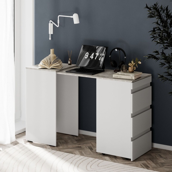 Компактний, зручний та стильний комод-трансформер, що за потреби легко перетворюється в робоче місце. Надійний та легкий механізм трансформації виключає ймовірність заклинювання при розкладанні. В будь-якому положенні, складеному чи розкладеному, конструкція комоду є міцною та стійкою, а за рахунок доданих до нього шухляд він додає більше місця для зберігання Ваших речей.