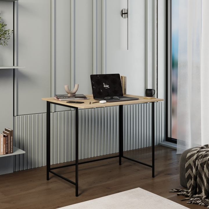 Максимально компактний стіл-трансформер Sly ідеально підійде тим, хто не любить заповнювати кімнату великою кількістю меблів. Може використовуватись в якості обіднього або письмового столу. Завдяки палітрі кольорів відмінно впишеться в інтер'єр будь-якої кімнати або офісу. Якість – наш пріоритет. Стільниця виготовлена з ламінованої ДСП. Металевий корпус забезпечує міцність та стійкість столу.
