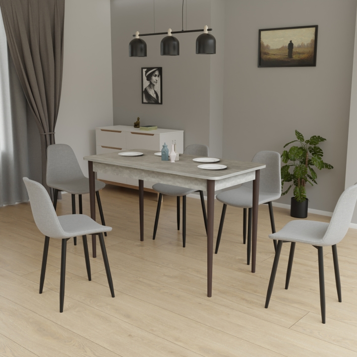 Столешница стола изготовлена из шестнадцати миллиметровой ДСП, что гарантирует его устойчивость и долговечность. Выбор такого материала подчеркивает ваше внимание к качеству и обеспечивает надежную основу для всех видов использования. Вариативность цветов столешницы - "Бетон", "Белый" и "Дуб сонома" - позволяет вам гармонично вписать стол в любой интерьер. Опора стола - это ножки КТ (Круглая точеные) 45х45х730 мм, которые отличаются элегантной простотой и надежностью.