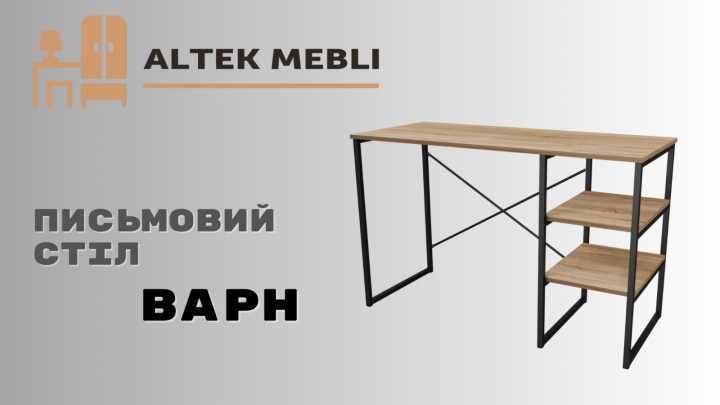 Письменный стол "ВАРН" от украинской мебельной фабрики "Неман" - это элегантный и функциональный предмет мебели, который создан, чтобы обеспечить вас удобным и стильным рабочим пространством.