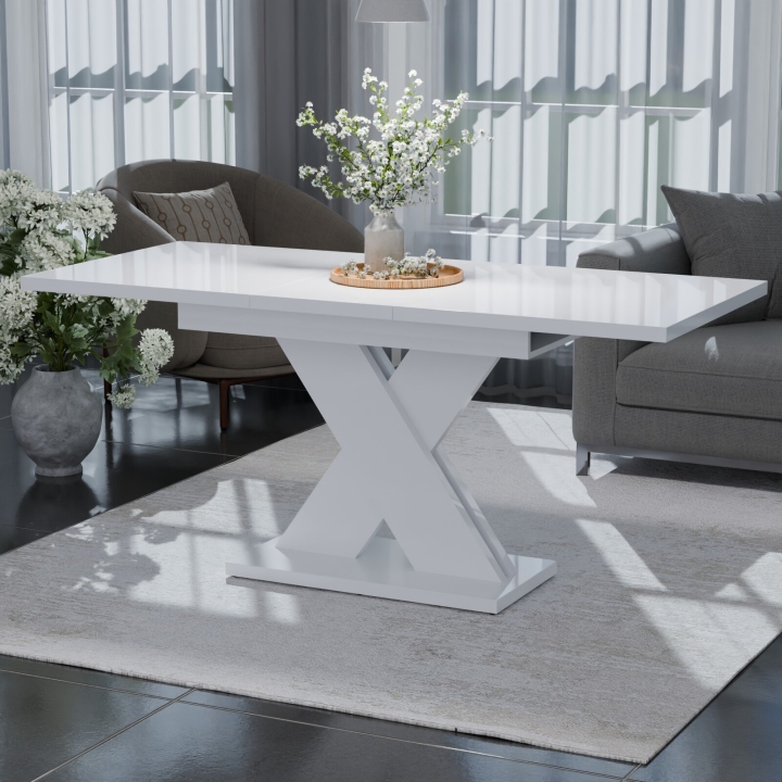 Обеденный раздвижной стол Неман ЛАМАР МДФ Белый глянец