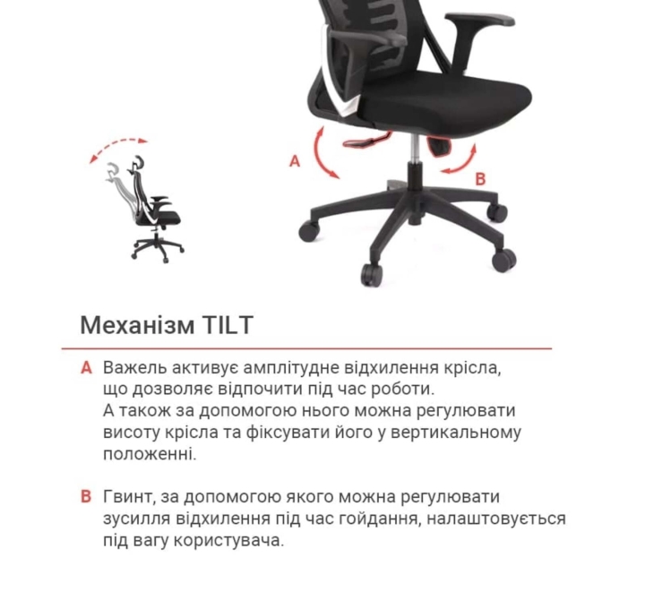 Механизмы. Механизм качания Tilt, установленный в кресле, – это механизм, с которым вы сможете подарить себе минуты приятного отдыха. Он настраивается под пользовательский вес и позволяет достигать наибольшего комфорта при работе в этом кресле. Кресло регулируется по высоте с помощью газлифта и вращается вокруг своей оси. Регулировка механизма качания осуществляется с помощью специального винта под сиденьем. Пружина зажимается под больший вес и наоборот – ослабляется под меньший.