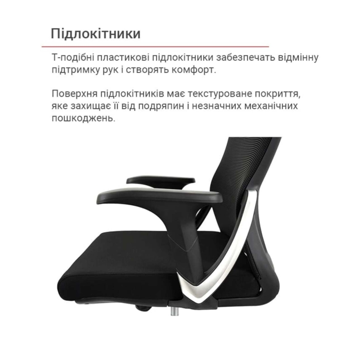 Подлокотники. Эта модель имеет стильные Т-образные подлокотники из черного пластика. Пластик имеет специальное покрытие, очень приятное при физическом контакте с руками.