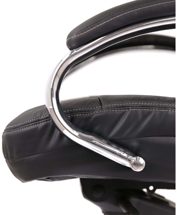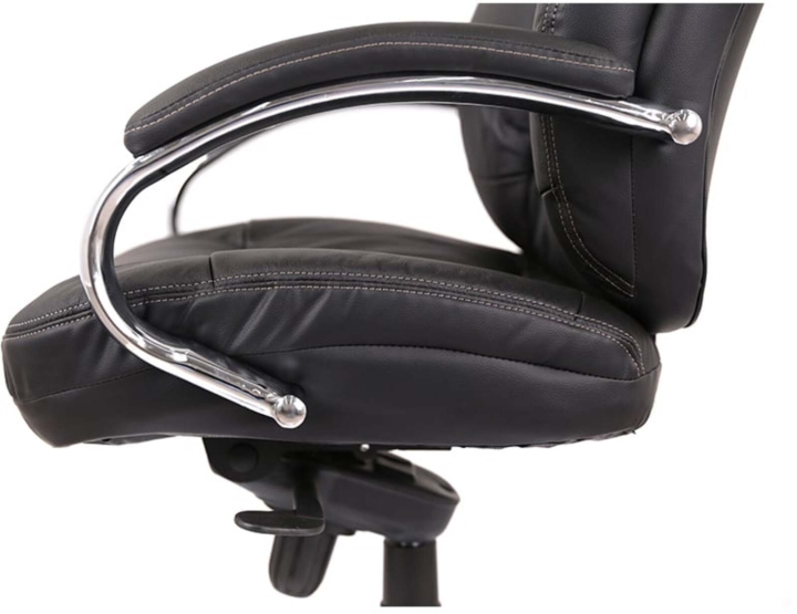 Підлокітники. Підлокітники округлої форми виготовлені з хромованою металевої труби. М'які накладки будуть служити вашим рукам надійною і комфортною опорою і захищати руки від контакту з холодною металевою поверхнею. Вдало підібрані розмір і висота підлокітників дозволять зручно розмістити руки, коли плечі впираються і не втомлюються під час довгого робочого дня, а також з легкістю прибрати крісло під стіл, коли воно не використовується за призначенням, і звільнити навколишній простір.