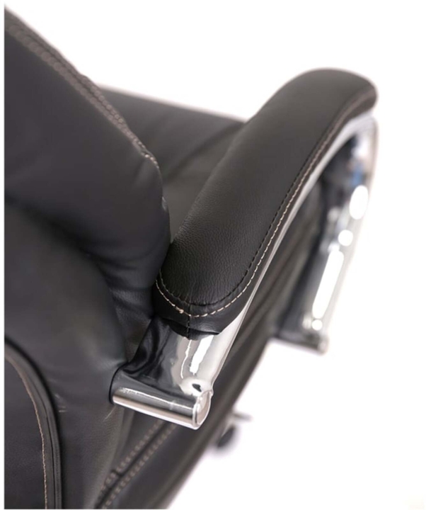 Дизайн. Зовнішність крісла Бадалона відповідає його благородній назві на честь іспанського міста. Воно стильне і елегантне, з істинно іспанським шиком. Прямокутна спинка злегка розширена до верху і оснащена високим інтегрованим підголовником, поперечним і бічними валиками. Всі ці елементи формують красивий силует і зручне посадочне місце. Бездоганне поєднання натуральної шкіри і хрому - це, безсумнівно, класика, доречна в будь-якому інтер'єрі.