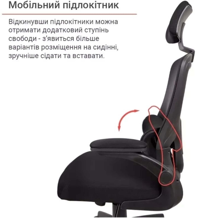 Подлокотники. У данной модели стильные Т-образные подлокотники из черного пластика. Пластик имеет специальное резиновое покрытие, очень приятное при физическом контакте с руками. Подлокотники откидные.