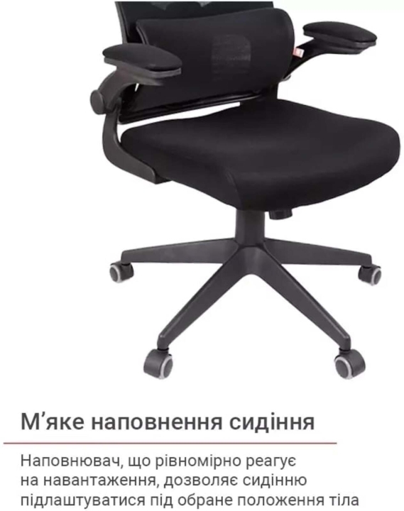 Особенности. Высокая эргономичная спинка имеет прогиб в поясничной области и специальный валик, обеспечивающий вашей спине комфортную поддержку, а вам хорошее самочувствие даже в конце насыщенного рабочего дня. Боковая поддержка, сформированная каркасом, поможет обегать позвоночник и сохранит правильную осанку. В сиденье кресла используется прочная основа из гибоклееной фанеры, которая совместно с поролоновым наполнением формируют удобную посадку.