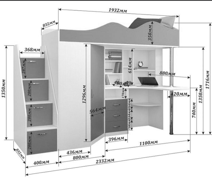 - компактная конструкция, позволяющая рационально использовать пространство детской комнаты;