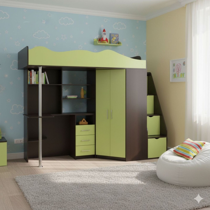 Кровать-чердак детская Art in Head Binky ДС37А 2332x1800x832 Венге и Лайм (ДСП) (Right) (BK02050016000)