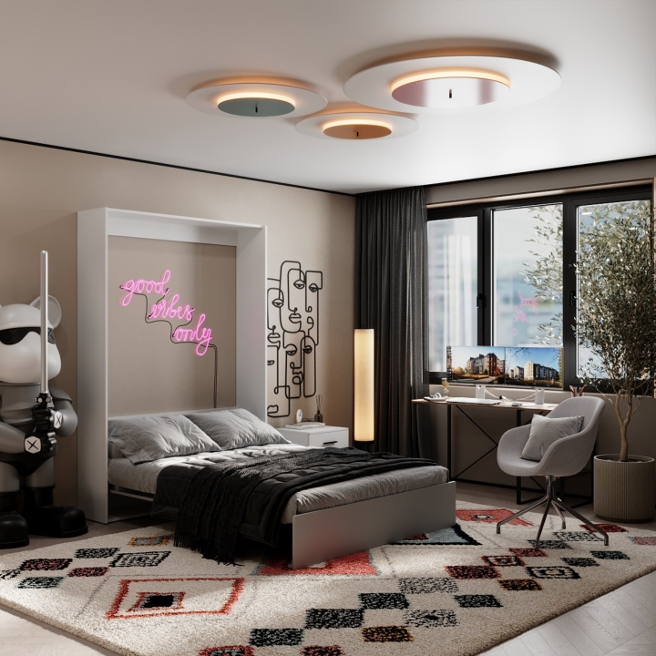 Если в вашей комнате двуспальная кровать займёт слишком много места, а постоянно спать на раскладном диване не хочется, то решить вопрос поможет современная Кровать-трансформер Mitra! Представляя собой полноценную кровать с ламельным блоком, Mitra оснащена подъёмным механизмом, который убирает ложе в компактный и внешне привлекательный шкаф, расположенный под стеной. Таким образом, днём вы имеете достаточно места для отдыха, работы или приёма гостей, а на ночь раскладываете удобную и комфортную для сна кровать.