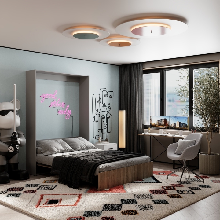 Якщо у вашій кімнаті двоспальне ліжко займе занадто багато місця, а постійно спати на розкладному дивані не хочеться, то вирішити питання допоможе сучасне Ліжко-трансформер Mitra! Представляючи собою повноцінне ліжко з ламельним блоком, Mitra оснащене підйомним механізмом, який прибирає ложе у компактну і зовні привабливу шафу, розташовану під стіною. Таким чином, вдень ​​ви маєте достатньо місця для відпочинку, роботи або прийому гостей, а на ніч розкладаєте зручне і комфортне для сну ліжко.