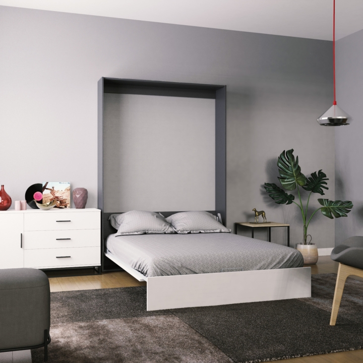 Если в вашей комнате двуспальная кровать займёт слишком много места, а постоянно спать на раскладном диване не хочется, то решить вопрос поможет современная Кровать-трансформер Mitra! Представляя собой полноценную кровать с ламельным блоком, Mitra оснащена подъёмным механизмом, который убирает ложе в компактный и внешне привлекательный шкаф, расположенный по д стеной. Таким образом, днём вы имеете достаточно места для отдыха, работы или приёма гостей, а на ночь раскладываете удобную и комфортную для сна кровать.