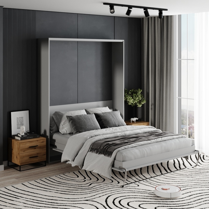 Кровать-трансформер Juno – современный функциональный подход к организации как самого спального места, так и общего пространства комнаты. Владельцы небольших и smart квартир, без сомнения, по достоинству оценят такую мебель, ведь ночью она представляет собой полноценную двуспальную кровать, а днём убирается в компактный шкаф стильного дизайна. Подъёмный механизм позволяет делать это быстро и совершенно без усилий, освобождая место для работы, отдыха или приёма гостей. Ламельный блок кровати позаботится о том, чтобы во время сна тело человека принимало анатомически правильное положение, оказывая ортопедический эффект.