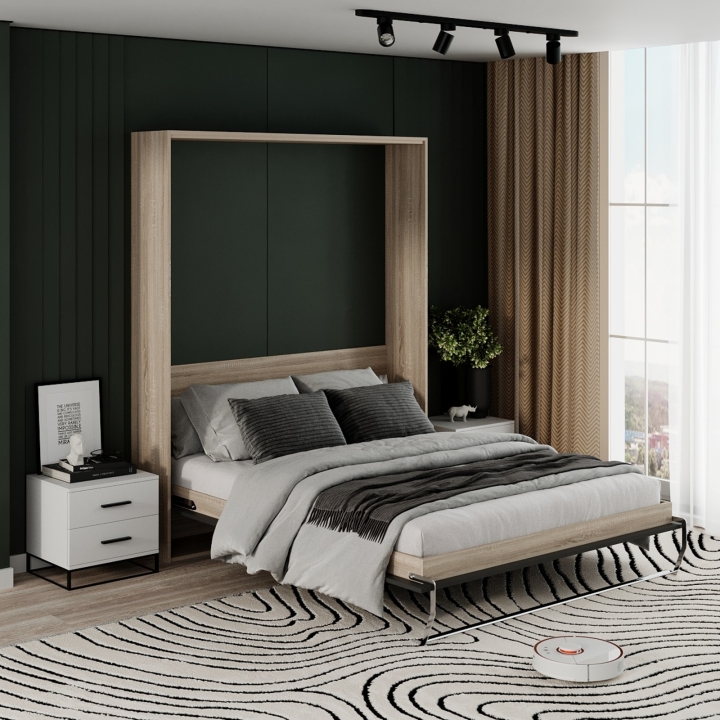 Кровать-трансформер Juno – современный функциональный подход к организации как самого спального места, так и общего пространства комнаты. Владельцы небольших и smart квартир, без сомнения, по достоинству оценят такую мебель, ведь ночью она представляет собой полноценную двуспальную кровать, а днём убирается в компактный шкаф стильного дизайна. Подъёмный механизм позволяет делать это быстро и совершенно без усилий, освобождая место для работы, отдыха или приёма гостей. Ламельный блок кровати позаботится о том, чтобы во время сна тело человека принимало анатомически правильное положение, оказывая ортопедический эффект.