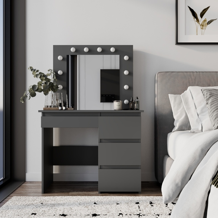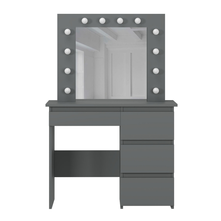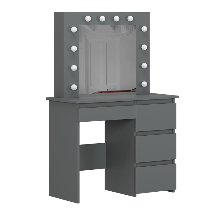 Центральная часть столика — это зеркало размером 550x530 мм с 12 LED-лампочками, которые обеспечивают равномерное освещение. Это создает идеальные условия для нанесения макияжа или ухода за лицом. Лампочки нейтрального цвета, входящие в комплект, легко можно заменить на теплые или холодные по вашему желанию.