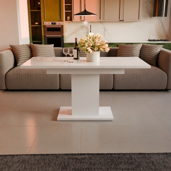 Обеденный раздвижной стол Неман ТВИСТ МДФ Белый глянец