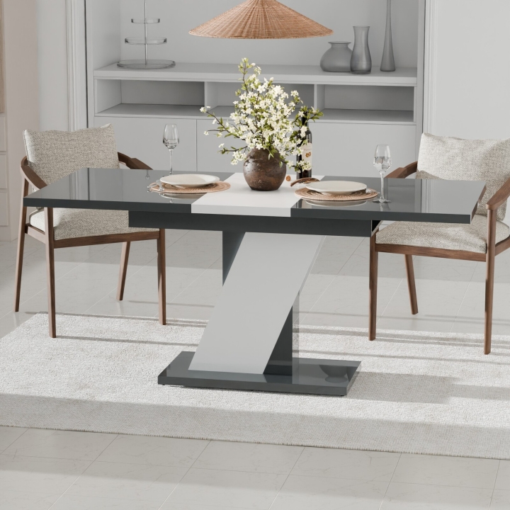 Обеденный раздвижной стол Неман ТРИОН МДФ Серый/Белый глянец