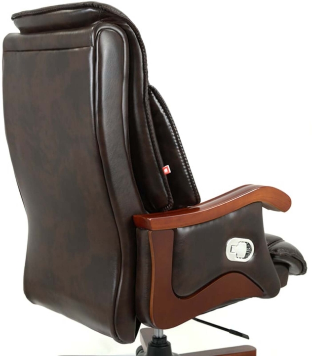 Дизайн. Благодаря классической форме, качественным материалам и продуманному до мелочей силуэту кресло выглядит солидно и дорого. Особое внимание следует обратить на эргономичную спинку с интегрированным подголовником – в таком кресле Вам понравиться не только продуктивно работать, но и приятно отдыхать в свободные минуты. Деревянные детали красивого оттенка дерева гармонично смотрятся на фоне классического цвета обивки и подчеркивают красоту кресла.