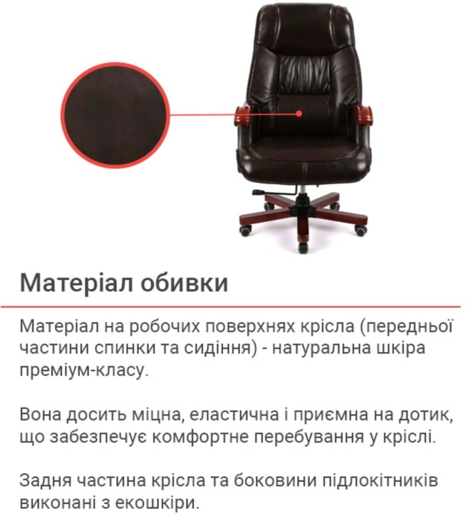 Обивка. Кресло представлено в натуральной коже. Натуральная кожа высочайшего качества – несомненно лучший выбор для этой модели премиум-класса. Преимущества данного обивочного материала – прочность, эластичность, хорошая тепло- и влагопроводимость. Кожа приятна на ощупь, хорошо пропускает влагу и не парит в жаркую погоду. Наполнение кресла из качественного поролона достаточно мягкое, создает чувство комфорта, работать в этом кресле можно часами, не ощущая усталости.