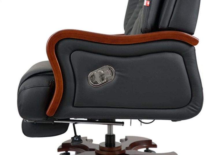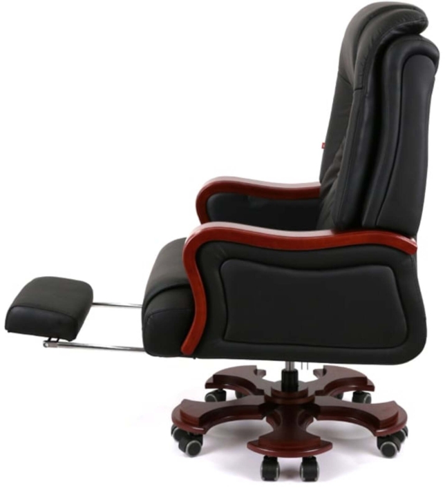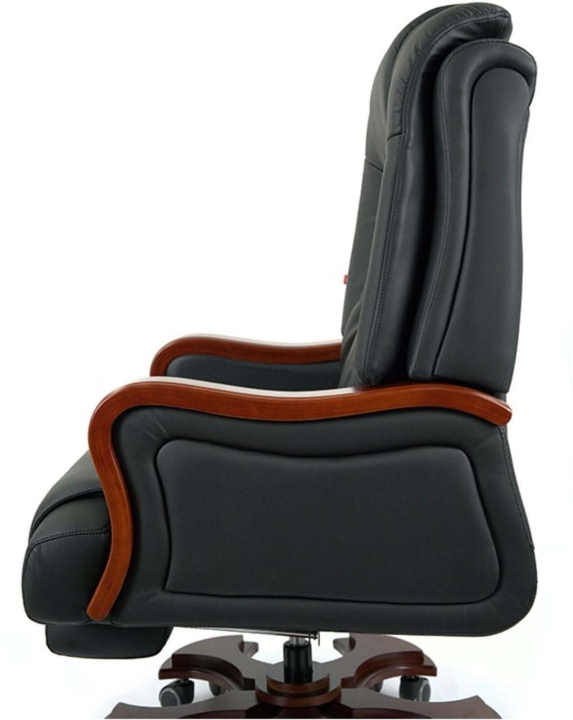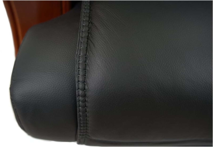 Дизайн. Благодаря классической форме, качественным материалам и продуманному до мелочей силуэту кресло выглядит солидно и дорого. Особое внимание следует обратить на эргономичную спинку с интегрированным подголовником – в таком кресле Вам понравиться не только продуктивно работать, но и приятно отдыхать в свободные минуты. Деревянные детали красивого оттенка дерева гармонично смотрятся на фоне классического цвета обивки и подчеркивают красоту кресла.