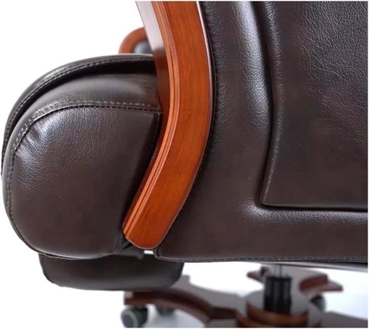 Дизайн. Благодаря классической форме, качественным материалам и продуманному до мелочей силуэту кресло выглядит солидно и дорого. Особое внимание следует обратить на эргономичную спинку с интегрированным подголовником – в таком кресле Вам понравиться не только продуктивно работать, но и приятно отдыхать в свободные минуты. Деревянные детали красивого оттенка дерева гармонично смотрятся на фоне классического цвета обивки и подчеркивают красоту кресла.