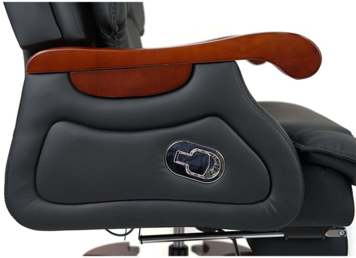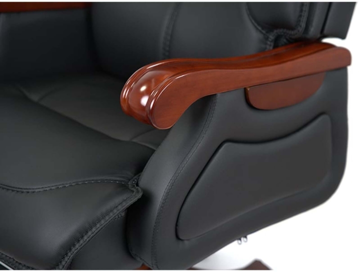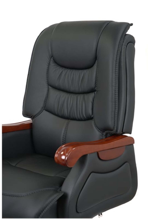 Дизайн. Благодаря классической форме, качественным материалам и продуманному до мелочей силуэту кресло выглядит солидно и дорого. Особое внимание следует обратить на эргономичную спинку с интегрированным подголовником – в таком кресле Вам понравиться не только продуктивно работать, но и приятно отдыхать в свободные минуты. Деревянные детали красивого оттенка дерева гармонично смотрятся на фоне классического цвета обивки и подчеркивают красоту кресла.