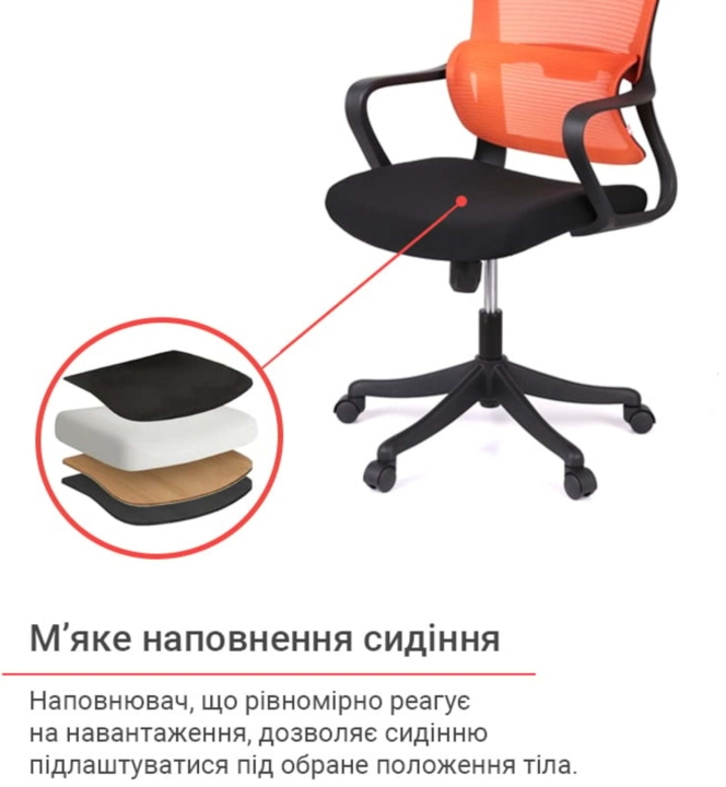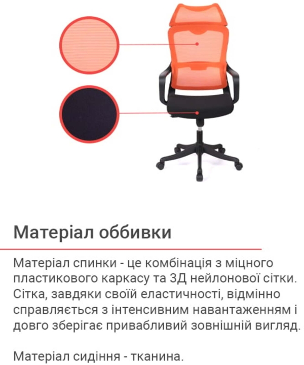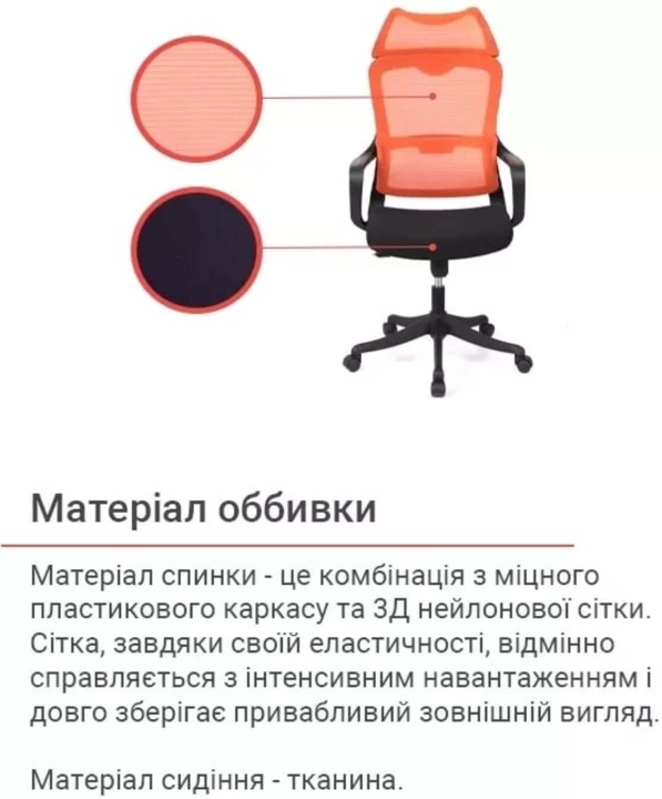 Обивка. Обивка спинки кресла – сетка, натянутая на крепкий пластиковый каркас, с которой вы будете комфортно чувствовать себя даже в самый жаркий день благодаря ее свойствам. Этот материал отлично справляется с интенсивной нагрузкой и долго сохраняет свои свойства и привлекательный внешний вид благодаря своей эластичности, повышенной воздухопроницаемости, прочности и износостойкости.