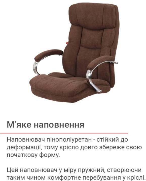 Обивка. Для обивки кресла используется мягкая износостойкая ткань. В качестве наполнителя применяют пенополиуретан, устойчивый к деформации, поэтому кресло долго сохранит свою первоначальную форму. Этот наполнитель в меру упруг, поэтому хорошо держит форму. Создавая таким образом поддержку спины сидящего. Если использовать кресло по рекомендациям, оно прослужит вам максимально долго, сохраняя не только свои физические свойства, но и ваше здоровье.