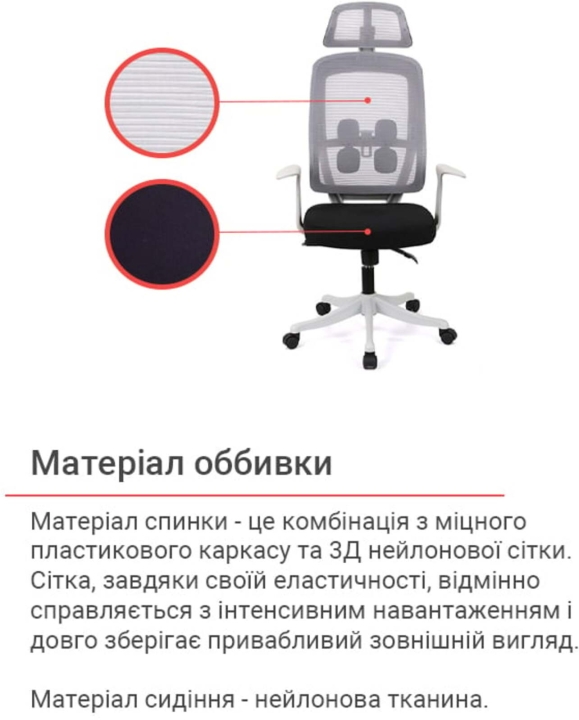 Дизайн. Відмінною рисою цієї моделі є дуже популярна сьогодні сітчаста оббивка та помітна зовнішність. Крісло виглядає так, немов зійшло з екрану фантастичного фільму про високотехнологічне майбутнє. Чіткі лінії силуету, мінімум декору і легкість - нічого зайвого, тільки максимум свободи та комфорту. Оригінальна спинка трапецієподібної форми має правильну ергономіку: невеликий поперековий вигин і легка бічна підтримка забезпечать комфортну опору спині. Додаткова підтримка хребта в області попереку регулюється завдяки спеціальному механізму, який кріпиться зовні, за сітчастої оббивкою.