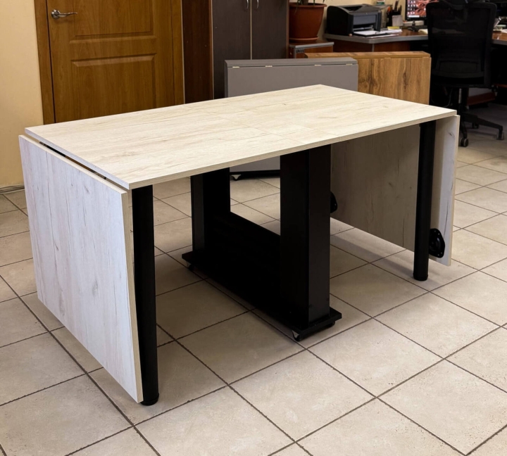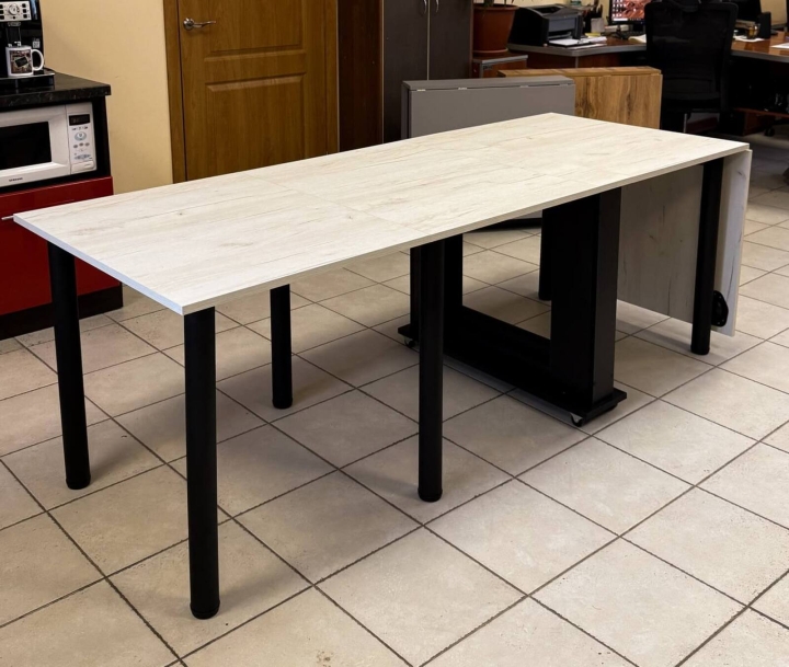 Цвет: Дуб Крафт Белый;ДСП: 18 мм;Кромка: пластик 0,5;Колеса: пластиковые на металлической основе;Опоры: металлические – 710х60 мм (чорные).Размеры: - в сложенном виде: 190х800х730 (мм);- в полуразложенном виде: 1470x800x730 (мм);- в разложенном виде: 2700х800х730 (мм).Хотим обратить Ваше внимание на то, что все столы, имеющие систему раскладывания типа «стол-книжка», могут содержать: небольшой люфт в местах стыковки столешниц, перепады между столешницами 1-2 мм, а также зазоры между столешницами 1-2 мм. Это является нормой и конструктивной особенностью столов, именно с таким механизмом раскладывания.Стол поставляется в собранном виде - распакуй и пользуйся!Срок доставки от 2 до 10 рабочих дней в зависимости от наличия на складе.Отгрузка (1 место):1 место - вес: 36 кгГабариты: 82*21*68 см
