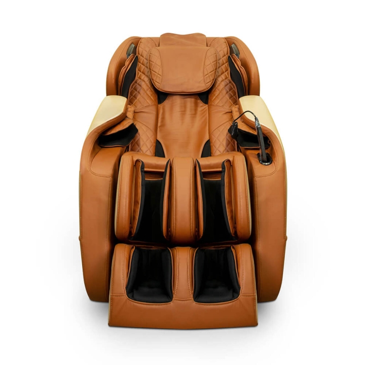 Массируются даже стопы. Перед запуском сеанса массажа станция наклоняет пользователя под углом 145 °, чтобы снять нагрузку с позвоночника и максимально расслабить. Обивка из черной экокожи.