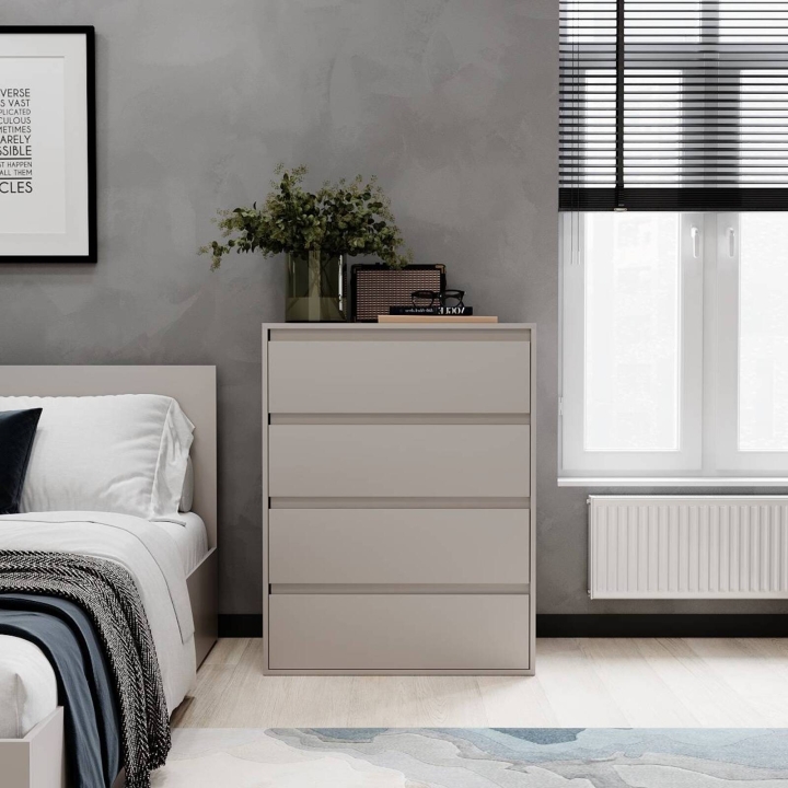 Високий комод з 4 висувними шухлядами – відмінне рішення для спальні, що дозволяє організувати зберігання необхідних речей: постільної білизни, рушників, піжам, халатів, домашнього одягу тощо. Проте, Комод Light 4 досить компактний і не займає багато місця, що є суттєвою перевагою там, де немає можливості розмістити великогабаритні меблі для спальні. Ще одні плюс моделі – сучасний дизайн, витриманий в дусі універсальності й лаконізму, який припаде до душі поціновувачам лофту, мінімалізму, скандинавського та інших актуальних інтер’єрних напрямків. Переваги комода Light 4: оптимальний розмір для кімнат будь-якої площі; зручна продумана конструкція; міцний і довговічний корпус, розрахований на постійні навантаження; 4 містких висувних шухляди; зносостійка фурнітура прихованого монтажу;