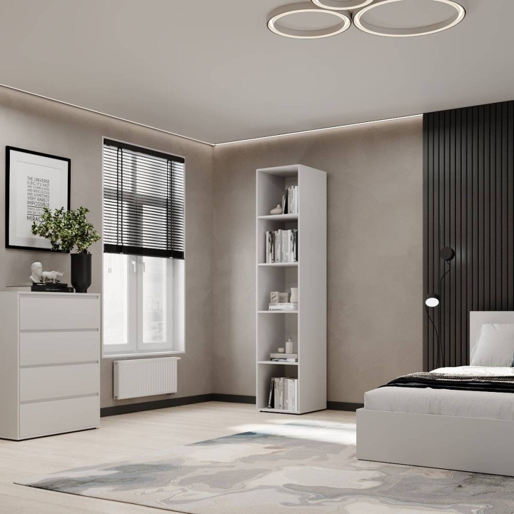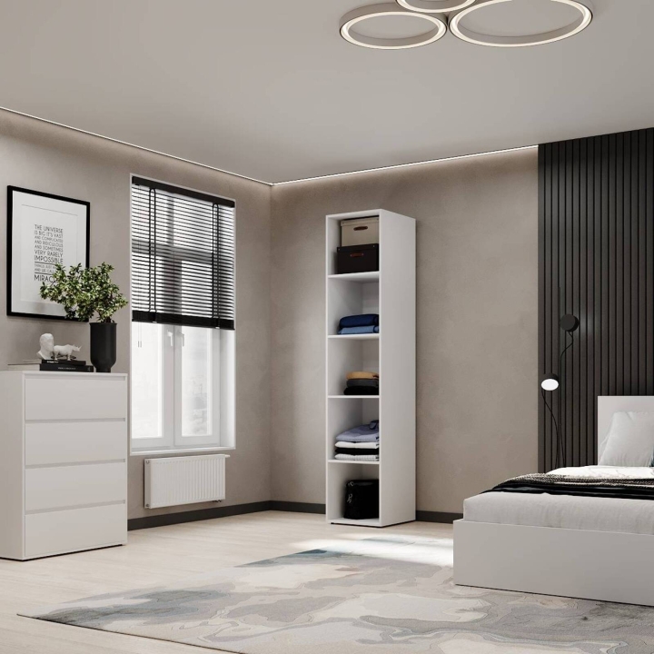 Пенал с полками открытый "Light" - стильное и практичное решение для организации пространства в вашем доме. Его открытый дизайн добавляет легкости интерьеру, а удобные полки обеспечивают комфортное хранение вещей. Основные характеристики: Габариты: 400x500x2200 мм - компактный пенал, который легко вписывается даже в небольшие помещения; Материалы: Высококачественное ламинированное ДСП, устойчивое к износу и царапинам. Кромка, открытые элементы — 1 мм ПВХ, остальные — 0,5 мм ПВХ; Внутреннее наполнение: Пять просторных открытых полок для хранения книг, декора или аксессуаров; Практичность и удобство: Пенал с полками открытый "Light" идеально подходит для комнат, где необходим быстрый доступ к вещам. Открытый формат создает ощущение пространства, гармонично дополняя интерьер. Отличный выбор для гостиной, офиса или детской комнаты. Поверхности пенала легко очищаются, сохраняя свежий вид на долгие годы. Выбирайте шкаф пенал "Light" для комфорта, элегантности и стиля, который органично впишется в ваше пространство!
