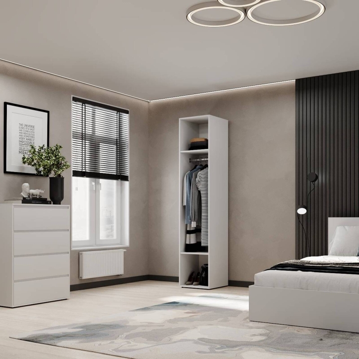 Шкаф пенал закрытый со штангой "Light" - это идеальное решение для тех, кто ценит минимализм и функциональность в маленьких помещениях. Компактные размеры 400Ч500Ч2200 мм позволяют эффективно использовать пространство даже в самых маленьких комнатах, обеспечивая достаточно места для хранения одежды, аксессуаров и обуви. Ламинированное ДСП высокого качества гарантирует устойчивость к износу и царапинам, что делает шкаф надежным и долговечным. Кромка, открытые элементы — 1 мм ПВХ, остальные — 0,5 мм ПВХ. Лаконичный минималистичный стиль с разнообразными вариантами цветов, такими как белый бриллиант, дуб сонома, графит, кашемир и дуб эвок, позволяет шкафу органично вписаться в любой интерьер, создавая ощущение простора и порядка. Шкаф оснащен удобной штангой для одежды, верхней полкой для аксессуаров и дополнительной нижней полкой для обуви или коробок, что делает его идеальным для хранения вещей в любом помещении. Одна дверь с изящной черной ручкой добавляет современного акцента, подчеркивая стиль вашего интерьера. Петли с доводчиком. Этот шкаф пенал - универсальный и модульный, подходит для спальни, прихожей или детской комнаты. Легкий уход за поверхностями обеспечивает сохранение эстетического вида на долгие годы. Выбирайте шкаф пенал закрытый со штангой "Light" и создайте организованное и стильное пространство уже сегодня!