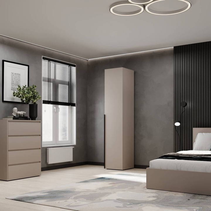 Шкаф пенал закрытый со штангой "Light" - это идеальное решение для тех, кто ценит минимализм и функциональность в маленьких помещениях. Компактные размеры 400Ч500Ч2200 мм позволяют эффективно использовать пространство даже в самых маленьких комнатах, обеспечивая достаточно места для хранения одежды, аксессуаров и обуви. Ламинированное ДСП высокого качества гарантирует устойчивость к износу и царапинам, что делает шкаф надежным и долговечным. Кромка, открытые элементы — 1 мм ПВХ, остальные — 0,5 мм ПВХ. Лаконичный минималистичный стиль с разнообразными вариантами цветов, такими как белый бриллиант, дуб сонома, графит, кашемир и дуб эвок, позволяет шкафу органично вписаться в любой интерьер, создавая ощущение простора и порядка. Шкаф оснащен удобной штангой для одежды, верхней полкой для аксессуаров и дополнительной нижней полкой для обуви или коробок, что делает его идеальным для хранения вещей в любом помещении. Одна дверь с изящной черной ручкой добавляет современного акцента, подчеркивая стиль вашего интерьера. Петли с доводчиком. Этот шкаф пенал - универсальный и модульный, подходит для спальни, прихожей или детской комнаты. Легкий уход за поверхностями обеспечивает сохранение эстетического вида на долгие годы. Выбирайте шкаф пенал закрытый со штангой "Light" и создайте организованное и стильное пространство уже сегодня!
