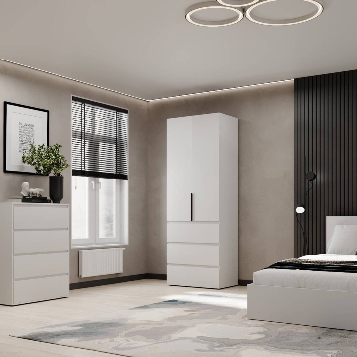 Шафа у спальню дводверна Light гармонійно поєднується з іншими меблями колекції "Light", дозволяючи створити єдиний стиль у приміщенні. Її мінімалістичний дизайн і універсальність роблять її чудовим вибором для спальні, передпокою чи навіть кабінету.