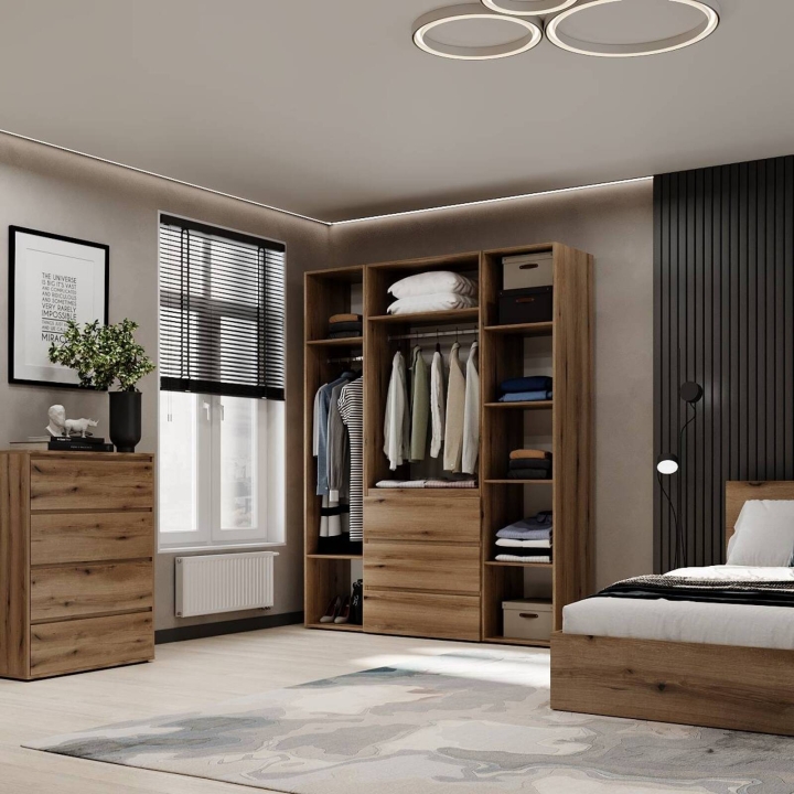 Модель идеально подойдёт для спальни, прихожей или гардеробной, где важно поддерживать порядок и компактно хранить вещи. Благодаря прямой форме шкаф легко впишется даже в небольшие помещения. Поверхности легко очищаются и не теряют привлекательного внешнего вида со временем.