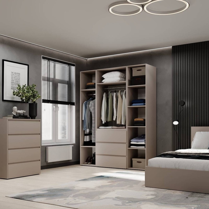 Модель идеально подойдёт для спальни, прихожей или гардеробной, где важно поддерживать порядок и компактно хранить вещи. Благодаря прямой форме шкаф легко впишется даже в небольшие помещения. Поверхности легко очищаются и не теряют привлекательного внешнего вида со временем.